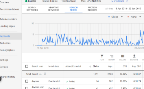Review the Search Terms Report (STR) – these are the actual search terms your ads showed for, based on your keywords.